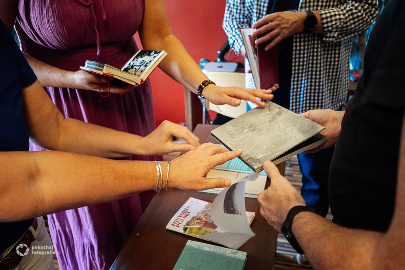 Każde artbookowe spotkanie to nowe, ciekawe artbooki. Dzieje się tak zarówno za sprawą pięknych fotografii, przemyśleń, energii, które przywożą ze sobą uczestnicy, a także dzięki kreatywności prowadzącego Michała Mrozka, jego inspiracjom i umiejętnościom. Sierpniowe spotkania zaowocowały niezwykłymi książeczkami. Folia, skóra, korek, kalka – to wszystko, oprócz rzecz jasna bardzo dobrej jakości papieru – stanowiło bazę do prezentacji najlepszych fotografii.